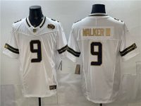 Men’s Seattle Seahawks #9 Kenneth Walker III White Gold 2025 F.U.S.E. 50th Season Patch Vapor Limited Stitched Football Jersey