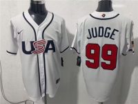 Men’s USA Baseball #99 Aaron Judge White 2026 World Baseball Classic United States 250th Anniversary Patch Road Stadium Stitched Jersey