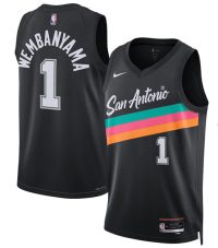 Men’s San Antonio Spurs #1 Victor Wembanyama Black 2022-23 Icon Edition Stitched Basketball Jersey
