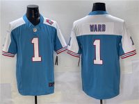 Men’s Tennessee Titans #1 Cameron Ward Blue White 2025 Draft F.U.S.E. 1997 Throwback Patch Vapor Limited Football Stitched Jersey