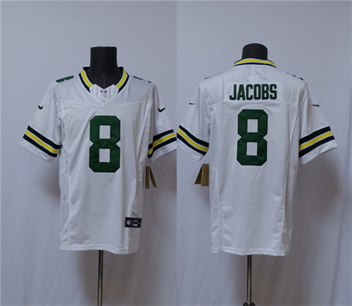 Men’s Green Bay Packers #8 Josh Jacobs White Vapor 2025 F.U.S.E. Limited Football Stitched Jersey