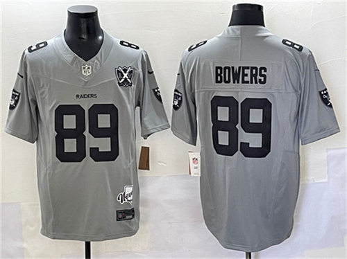 Men’s Las Vegas Raiders #89 Brock Bowers Gray 2024 F.U.S.E With Nevada Silver Stat Patch And 65th Anniversary Patch Stitched Football Jersey