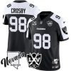 Men’s Las Vegas Raiders #98 Maxx Crosby Black & White Split With 65th Anniversary Patch Vapor Limited Football Stitched Jersey