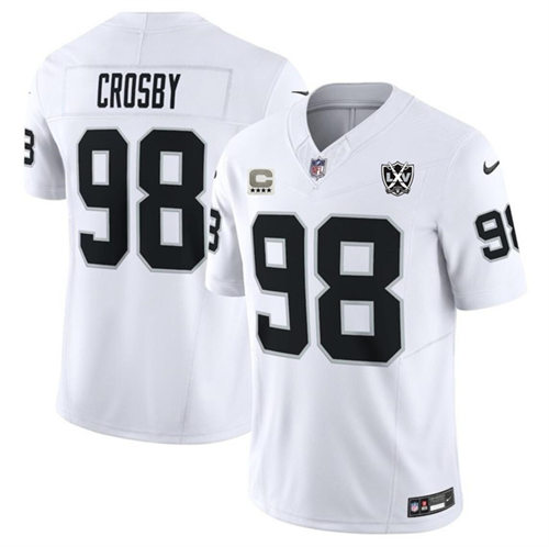 Men’s Las Vegas Raiders #98 Maxx Crosby White 2024 F.U.S.E With 4-Star C Patch And 65th Anniversary Patch Vapor Football Stitched Jersey