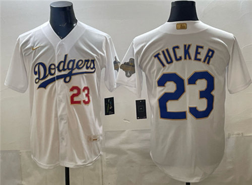 Men’s Los Angeles Dodgers #23 Kyle Tucker White 2026 Gold Collection Stadium Stitched Baseball Jersey