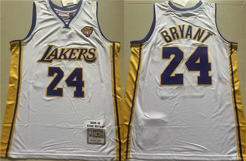 Men’s Los Angeles Lakers #24 Kobe Bryant White 2009-10 Stitched Basketball Jersey