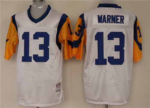 Men’s Los Angeles Rams #13 Kurt Warner White Throwback Football Stitched Jersey