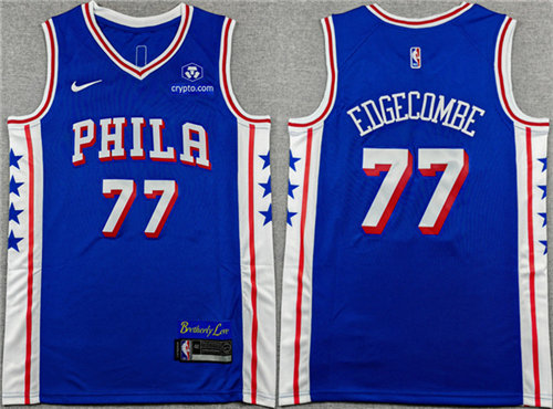 Men’s Philadelphia 76ers #77 V. J. Edgecombe Royal Icon Edition Stitched Jersey