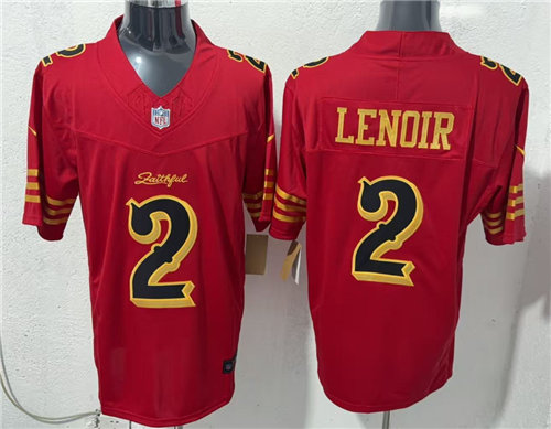 Men’s San Francisco 49ers #2 Deommodore Lenoir Red Gold 2025 F.U.S.E. Rivalries Vapor Limited Football Stitched Jersey