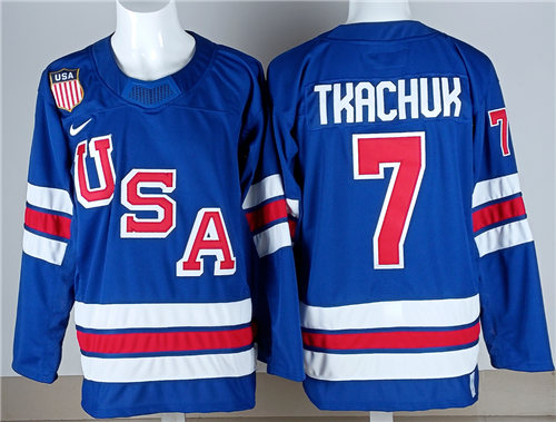 Men’s Team USA 7 Tkachuk Royal 2026 Stitched Jersey