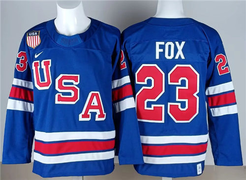 Men’s USA 23 Adam Fox Royal 2026 Stitched Jersey