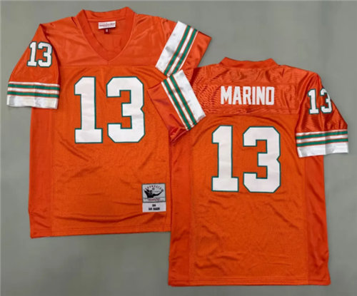 Mitchell and Ness Dolphins Dan Marino #13 Orange Stitched Jersey