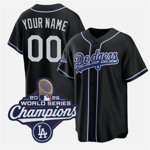 Youth Custom Dodgers Black 2025 World Series Champions Limited Stitched Jersey