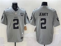 Men’s Las Vegas Raiders #2 Ashton Jeanty Gray 2025 Draft F.U.S.E. With Nevada Silver Stat Patch And 65th Anniversary Patch Football Stitched Jersey