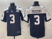 Men’s Dallas Cowboys #3 George Pickens Navy F.U.S.E. With 5x Super Bowl Champions Established In 1960 Patch Thanksgiving Vapor Limited Stitched Football Jersey