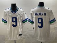 Men’s Seattle Seahawks #9 Kenneth Walker III White F.U.S.E. Throwback Vapor Limited Football Stitched Jersey